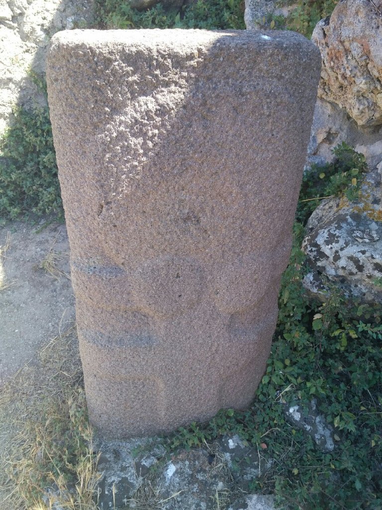 Near modern day Porto Torres, close to a spring and surrounded by distant mountain peaks on the south side, an ancient terraced site resembling a ziggurat rises out of the Nurra plain. This area had long since been regarded as sacred, most likely due to its setting and vantage point, and menhirs and stellae decorated with symbols were previously laid out here. The use of menhirs, or baetyl, proliferated during the Ozieri period, reflecting a wider tradition that had started in the Levant (or possibly Egypt) thousands of year earlier and migrated all the way across to the British Isles.