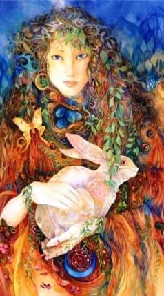 The month of April is the time of the full Hare Moon, or Planters Moon, when the sowing of the crops takes place and early blossoms and shy wildflowers unfurl with the rapidly awakening Earth. The name April could be linked to that of Aphrodite the Greek goddess of love, but to the Anglo Saxons this was the month of Eostre, goddess of spring and fertility. Her name has survived in both the Christian festival of Easter and the hormone oestrogen, responsible for orchestrating the female reproductive cycle and therefore birth. She was also linked to the growing light and budding of Spring, like Eos the Indo-European goddess of the dawn.